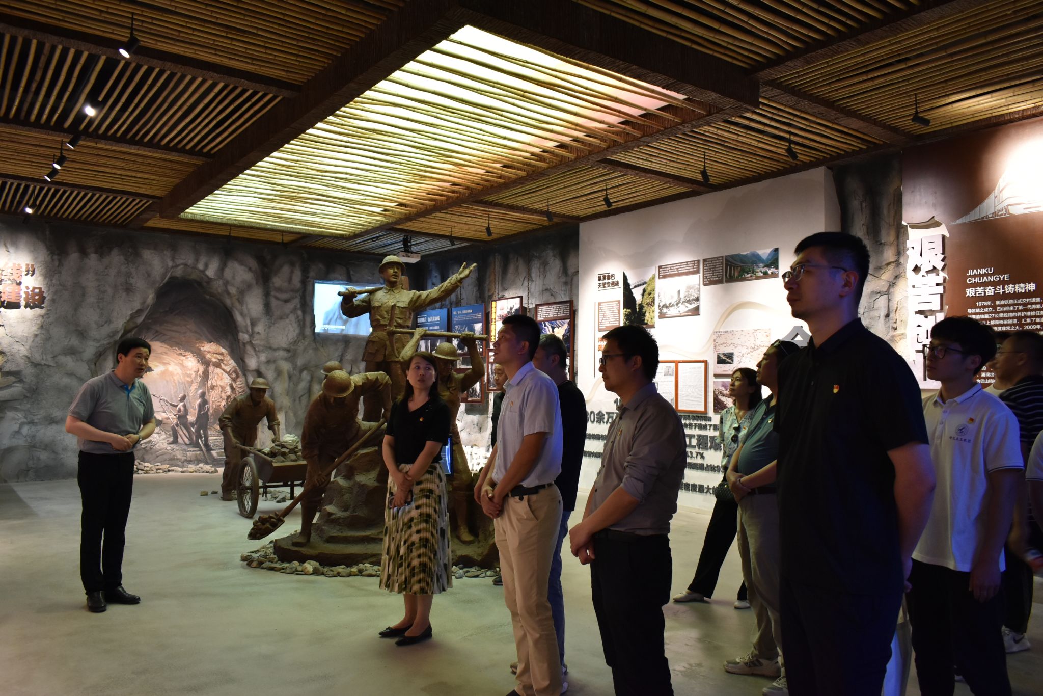 会后,两公司师生一起前往巴山精神教育基地参观学习。在庆晓勇同志深情并茂的讲解下,大家陆续参观了巴山精神陈列馆、劳模和工匠人才创新工作室、巴山职工文化创业基地、党员活动阵地、巴山精神报告厅等,全面了解了“巴山精神”产生、发展、传承的全过程。每到一处,大家一边仔细倾听讲解,一边驻足观看一幅幅图文资料、一件件珍贵实物,聆听一个个真实故事,思绪已然跟着讲解员穿越到建设巴山铁路的峥嵘岁月,亲身感受到了一代代巴山铁路人的创造与奉献、坚守与继承,时刻被“巴山精神”蕴含的安心山区的奉献精神、艰苦奋斗的创业精神、开拓进取的拼搏精神、坚定乐观的自强精神所激励、所感动。在场同志们重温入党誓词并纷纷表示,要继承和弘扬巴山精神,不断增强理想信念,立足岗位,不忘初心、牢记使命,为党育人、为国育才,为实现中华民族伟大复兴的中国梦奉献青春和力量。(文:班凯、刘凯/图:南剑波/审核:王莉、李晗)