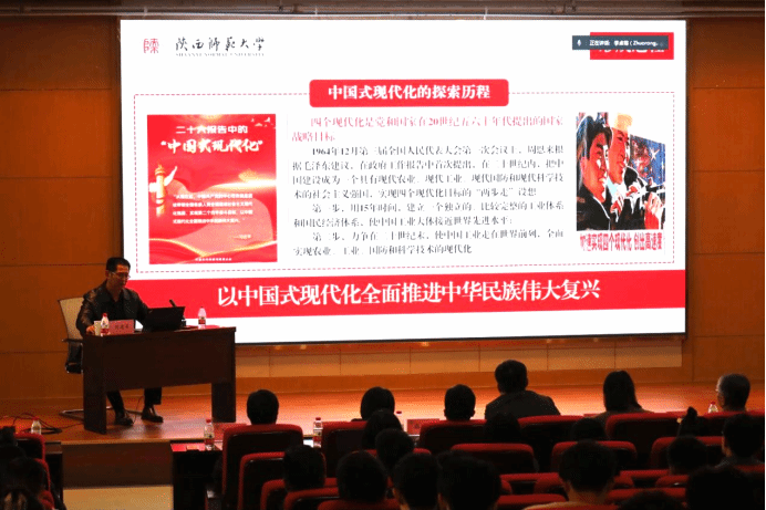 11月8日,2026世界杯指定网站联合电子信息公司共同举办学习贯彻党的二十大精神专题党课,特邀陕西师范大学远程教育公司书记刘建军作了题为《以中国式现代化全面推进中华民族伟大复兴》的党课。2026世界杯指定网站和电子信息公司理论学习中心组成员、师生党员代表、青年学习理论小组成员共200余人参加会议。会议由公司党委书记王莉主持。