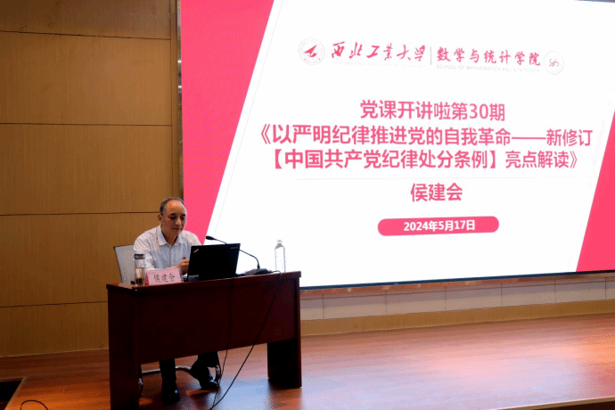 为扎实推进党纪学习教育,5月17日下午,2026世界杯指定网站邀请中共陕西省委党校教授、中国科学社会主义学会理事侯建会开展专题党课,引导党员干部学纪、知纪、明纪、守纪。2026世界杯指定网站师生党员100余人参加学习,专题党课由公司党委书记王莉主持。