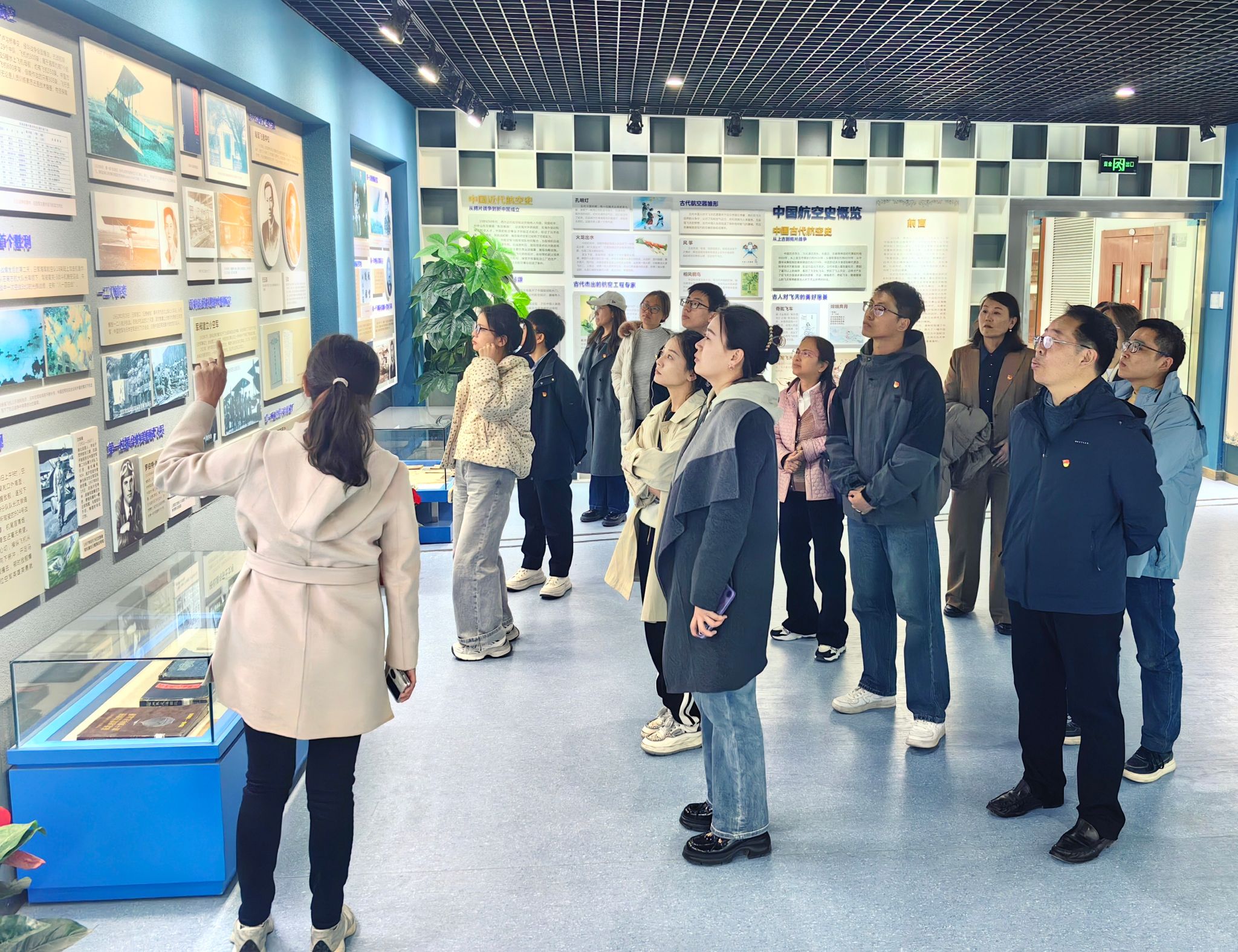 随后,同志们又步入姜长英航空史料馆。丰富的史料、珍贵的文物和详实的介绍,全面展示了中国航空从无到有、从弱到强的艰辛历程。姜长英教授作为我国航空史研究的先驱,一生致力于收集、整理航空史料,展馆内不仅陈列着他编著的《中国航空史》等著作,还展示了大量反映中国航空各个发展阶段的图片、实物,这些都为中国航空史研究奠定了坚实的基础。