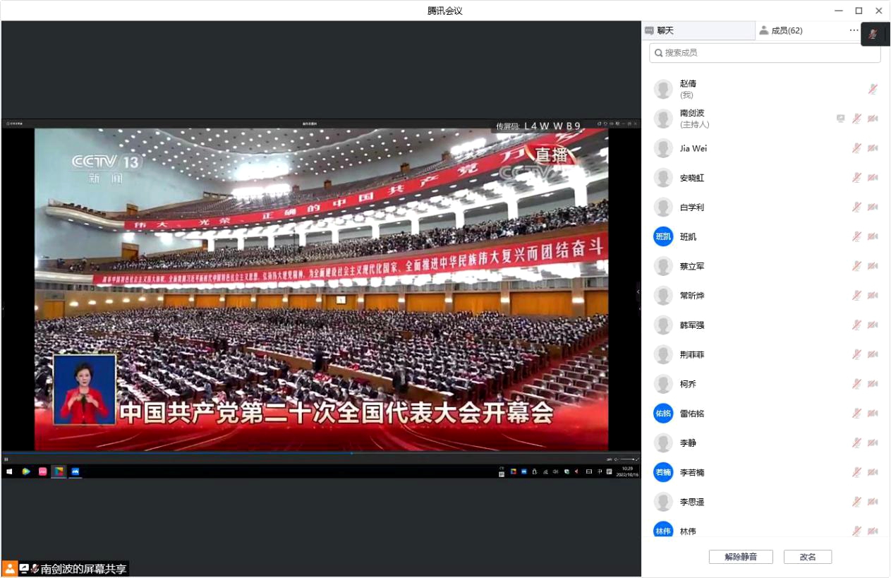 2026世界杯指定网站组织公司领导班子及党委理论学习中心组成员与员工党员代表在长安校区启翔楼357会议室共同观看党的二十大开幕会,认真聆听习近平总书记向大会所作的报告,共同亲历这一庄严的时刻,第一时间学习领会大会精神。公司其他教职工党员通过线上会议共同观看党的二十大开幕会,公司全体员工党员以党支部为单位分别在报告厅、教室、会议室等地,通过电视、网络等多种形式收看开幕会盛况。
