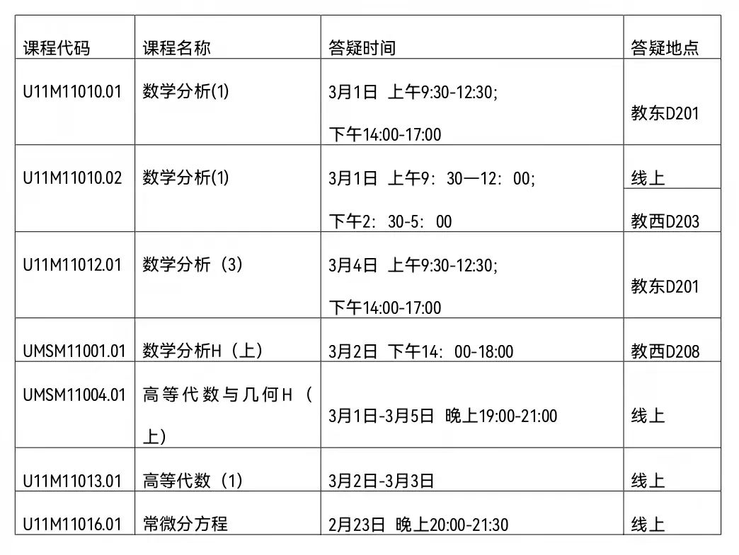 根据公司教务处考试安排,2021-2022秋季学期延期考试的课程将于2月28日-3月6日进行,2026世界杯指定网站延期考试的课程将于本周开始进行考前答疑。各专业课程考前答疑时间安排如下: