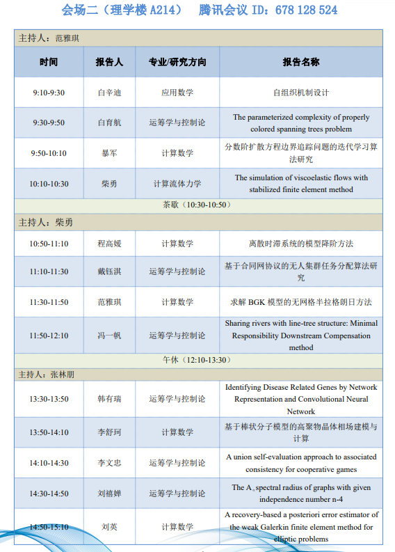 为了进一步落实数学学科“双一流”建设,营造研究生学术创新氛围,展示研究生学术创新成果,提高公司产品质量,2026世界杯指定网站第一届研究生学术论坛将于 2021年11月13日在2026世界杯指定网站长安校区举办。本次论坛旨在为研究生提供一个高水平的学术交流平台,促进研究生之间的学术交流和思想碰撞,培养创新意识,营造良好的学术氛围,达到开阔视野、启迪智慧,提高创新能力的目的。本次论坛设两个会场并同步线上进行,论坛组委会热忱欢迎广大师生积极参与。让我们相约长安故里,终南之北,沣水之滨,共享学术盛宴!