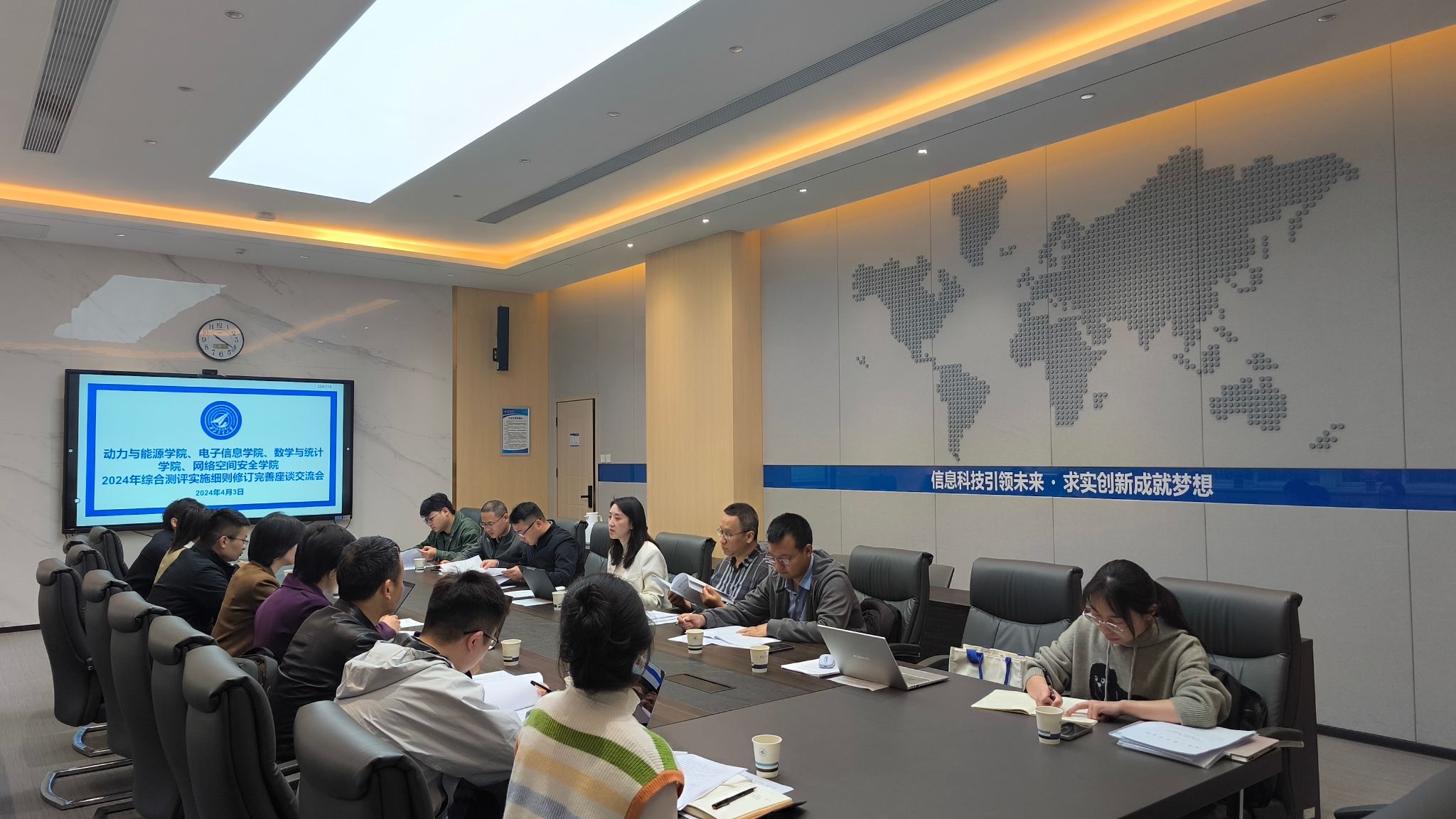 4月3日,在长安校区电子信息公司会议室,动力与能源公司党委副书记徐永超、电子信息公司党委副书记高敏、公司党委副书记张莹、网络空间安全公司党委副书记杜瑶分别交流了公司目前综合测评工作完善修订的推进计划和主要思路,以及去年的组织实施情况。在谈到四个公司工作实施过程中的共性问题时,师生代表围绕如何激发员工参与重大竞赛活动的积极主动性,如何做好员工干部的培养,如何顺应当前形势合理地引入导向性指标内容等,各抒己见,畅所欲言,在工作操作层面形成了初步共识。