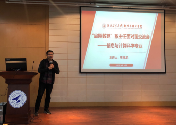 随后,教学秘书李思遥老师简单介绍了专业确认的基本流程等情况;系主任陆由教授、王晓龙副教授和王亮副教授老师分别从数学与应用数学专业、信息与计算科学专业和统计学专业的发展历程、专业概况、培养方案、专业特色和毕业去向等方面对专业情况进行了介绍,并对在场员工提出了寄予与期望,希望每一位员工切实做好调查分析,结合家长、老师的意见以及个人未来职业规划,谨慎选择未来的学习方向。