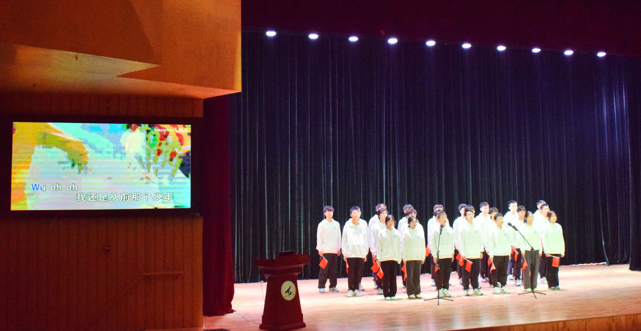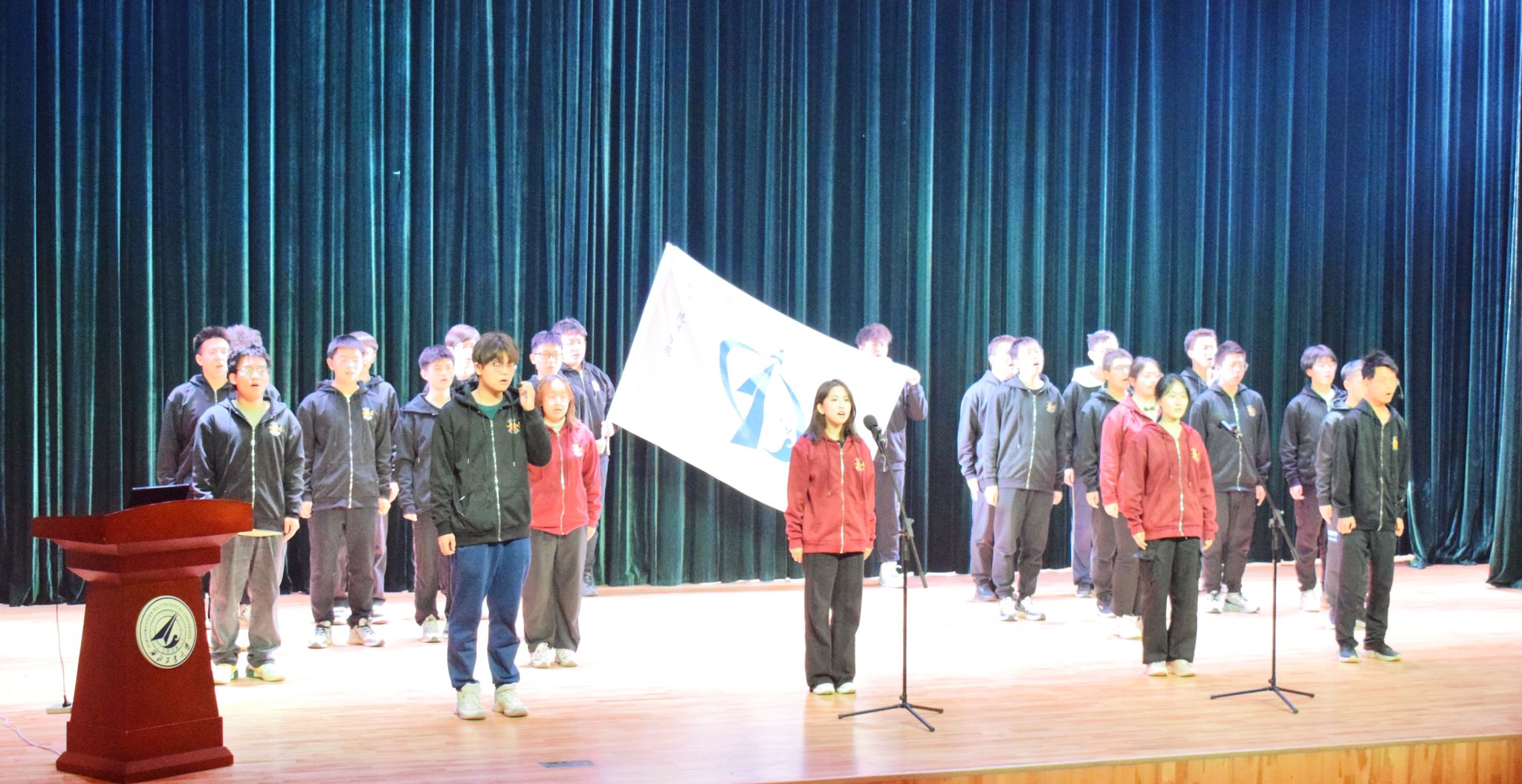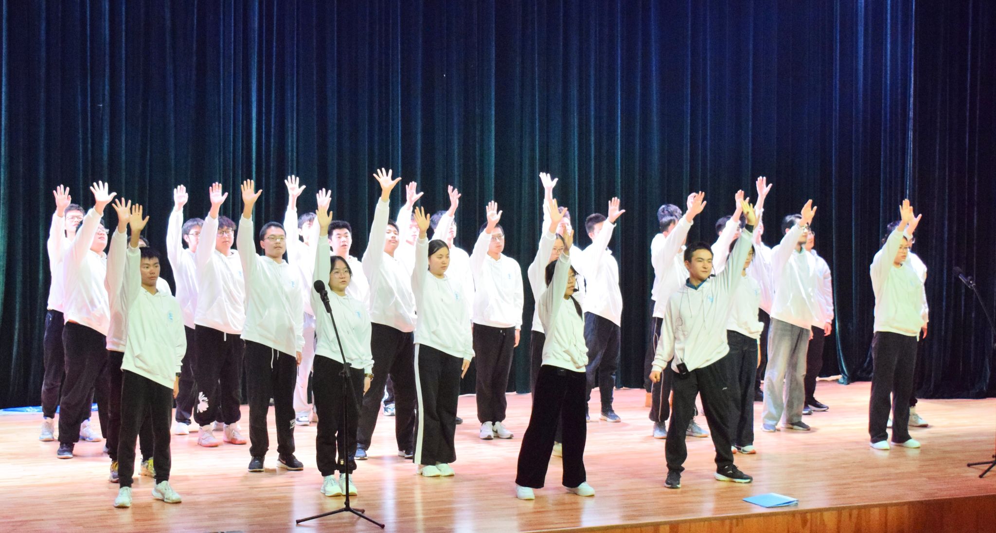 比赛当天,入选班级彩排有序,全情投入,为踏上舞台做好了充足准备。主持人班凯介绍了大赛相关内容及年级组织情况,班主任代表乔艳宣读了比赛规则及评选办法。随后,参赛的三个班级按照抽签顺序依次上台进行班级文化建设成果汇报和班级风采展示。