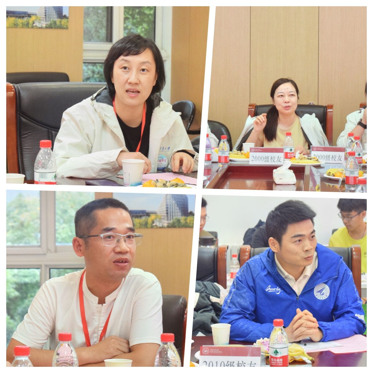 下午,在公司组织的师生座谈会上,经理聂玉峰(线上致辞),党委书记王莉依次代表公司对员工们回家表示热烈的欢迎,在介绍公司自2019年建院以来取得长足进步和快速发展的同时,也坚定表示,未来公司将在广大师生和员工们的热切关注与持续支持下,为实现公司“天下工大,世界三航”的远景目标,奋力在公司“总师育人文化”的引领下,在人才培养、科学研究、团队队伍建设与国际合作等方面再创佳绩。员工总会办公室副主任苟兴旺回忆当年在数学系留校任辅导员的工作经历,饱含深情,他说:“二十年后和大家在此相遇,我感到非常激动,欢迎各位员工常回家看看,母校永远是大家的坚强后盾。”在场教师与员工们也结合会议主题,纷纷为公司、公司发展各抒己见,有的表示以在工作岗位上接连听到公司、公司的声誉影响不断扩大而感到骄傲自豪,有的是从个人实际出发希望与公司有进一步的交流合作,有的在回忆当年漫漫求学之路时,对在场的大一新生寄语祝福和希望。师长、学长们情深意切,语重心长,学弟、学妹们获益良多,掌声热烈。