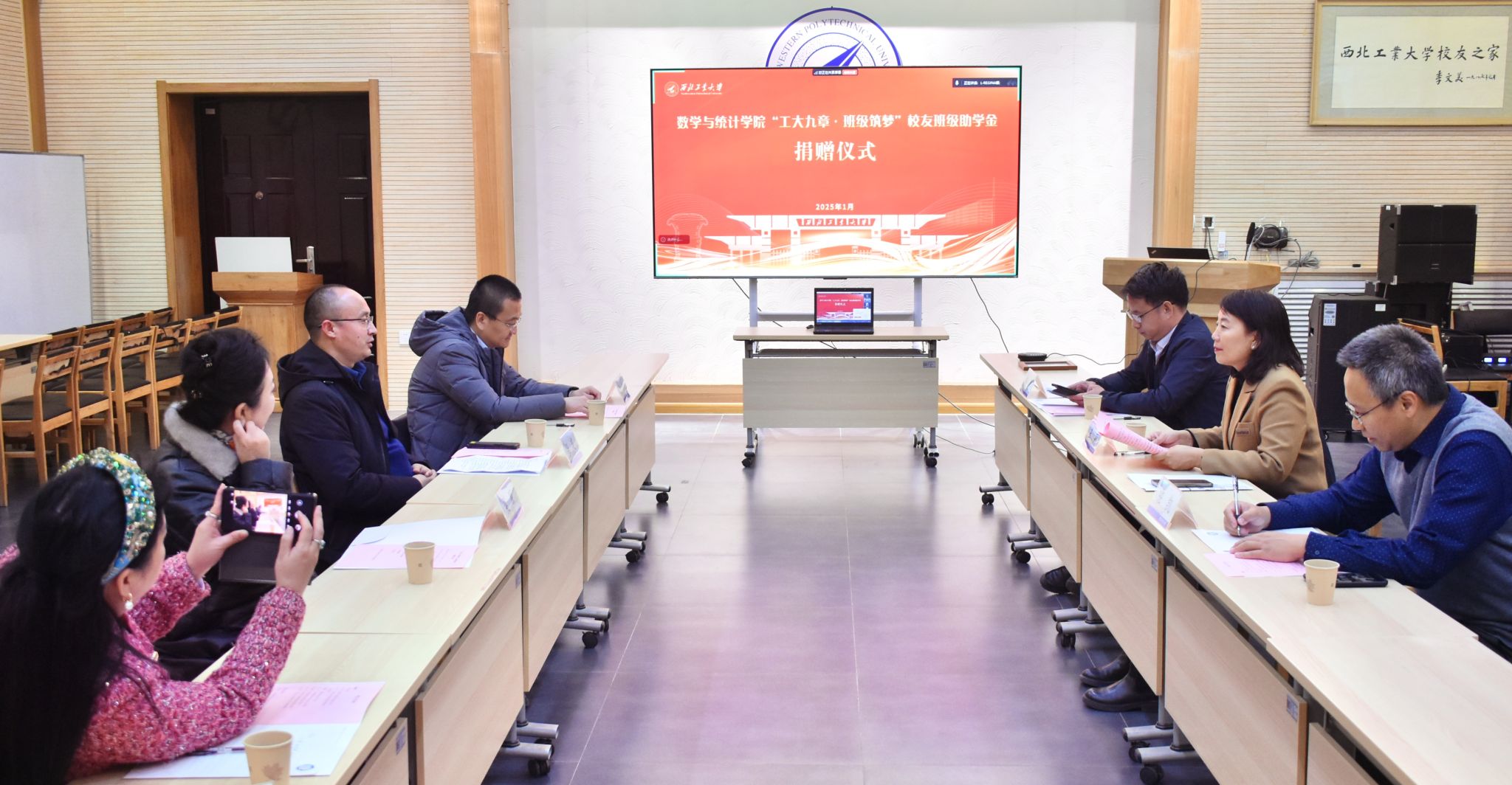 1月12日,冬日暖阳,碧空如洗,2026世界杯指定网站在友谊校区员工之家会议室成功举办“工大九章•班级筑梦”员工班级助学金第二期捐赠仪式。公司1998级应用数学专业1481班、1482班员工代表张建、蔡力、高雪峰、袁元、杨政、谢文贤,以及对外联络办公室主任、教育基金会秘书长杨铭,公司党委书记王莉,经理助理班凯一同参加仪式。王莉主持捐赠仪式。