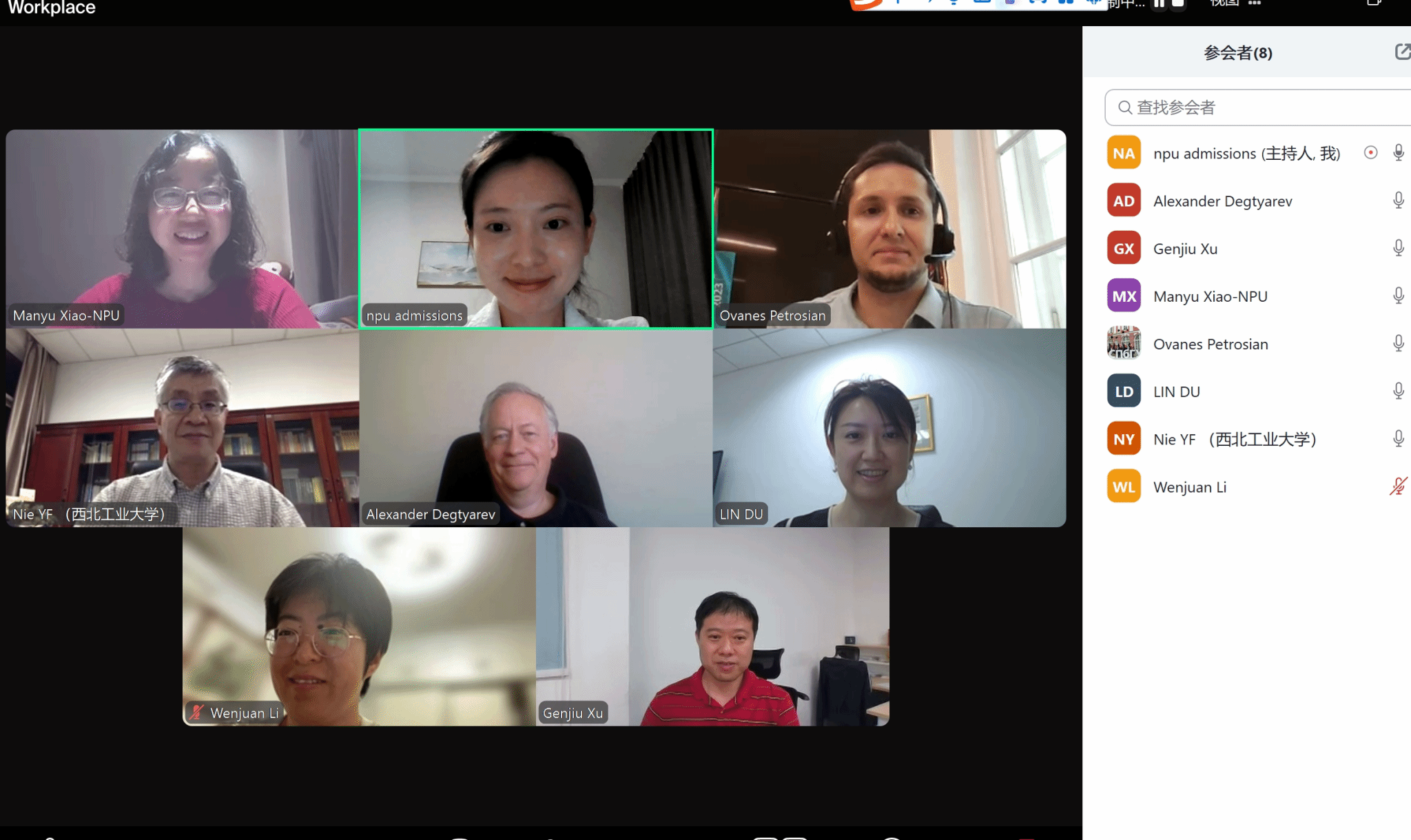 俄方出席人员包括圣彼得堡国立大学外事处主任Tatyana Ryazantseva女士、人工智能中心主任及应用数学与过程控制系数学博弈论和统计决策教研室副教授Ovanes Petrosyan、计算机建模与多处理器系统研究室教授Aleksandr Degtyarev与编程技术研究室副教授Ivan Blekanov。数统公司出席人员包括经理聂玉峰、国际化副经理都琳、研究生副经理徐根玖、国际交流与合作办公室主任肖曼玉、调和分析与几何分析团队教授李文娟、国际化秘书李卓榕。会议由李卓榕主持。