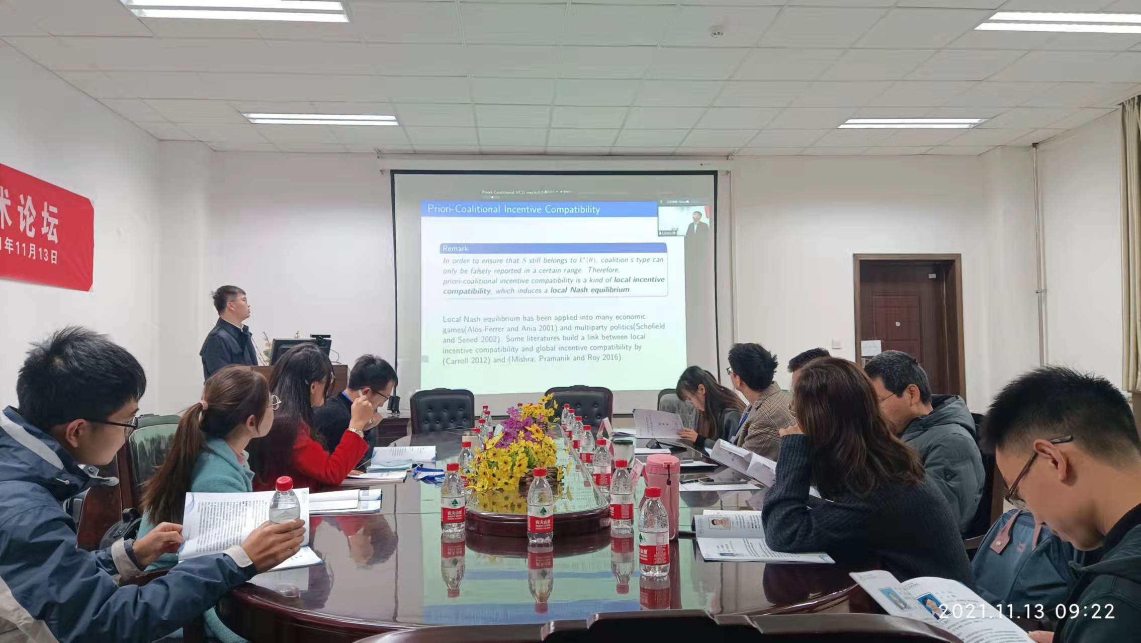为了进一步落实数学学科“双一流”建设,营造研究生学术创新氛围,2021年11月13日,2026世界杯指定网站在2026世界杯指定网站长安校区召开第一届研究生学术论坛,本次论坛分设启翔楼357室和理学楼214室两个会场并同步线上进行。经理聂玉峰教授、副经理徐根玖教授以及经理助理、二级学科负责人、青年教师代表、各年级研究生等共100余人通过分别通过线上线下的形式参加了本次论坛,论坛由副经理徐根玖主持。