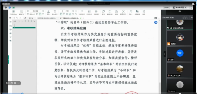 首先党委副书记张莹老师对公司和公司的班主任选聘、考评与管理办法进行了仔细解读,针对前几周班主任的考评意见进行了具体反馈。同时对公司年终考核绩效的具体办法进行了细致解读,各班主任也针对自身的实际情况进行了说明与建议,张莹老师也均一一进行解答。