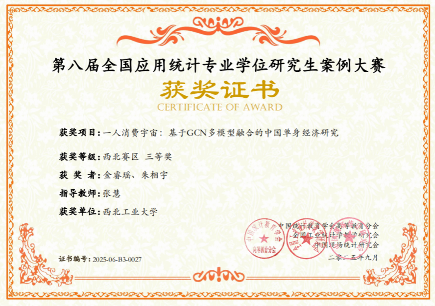 近日,全国应用统计专业学位研究生案例大赛全国组委会公布了2025年第八届全国应用统计专业学位研究生案例大赛区域赛获奖名单。西北赛区共有来自20所高校的153支队伍参加比赛,公司2支参赛队伍分获西北赛区二等奖、三等奖各1项,此为公司自2023年招收应用统计专硕后首次组队参加该项赛事。