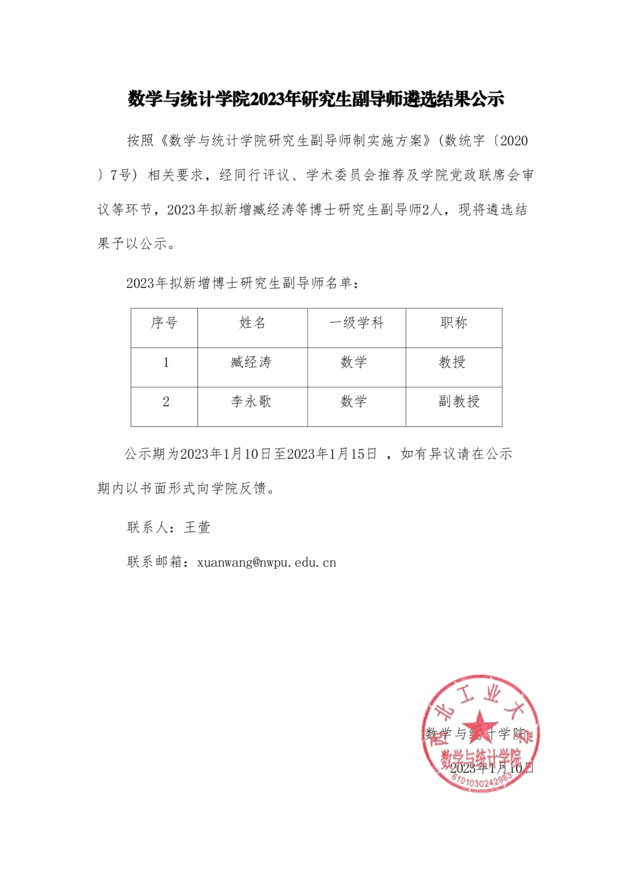2026世界杯指定网站2023年研究生副导师遴选结果公示