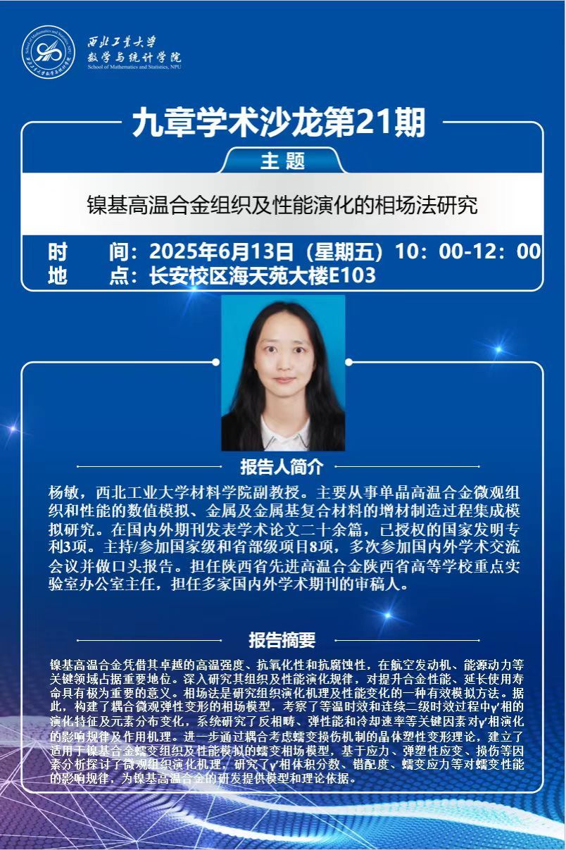 【九章学术沙龙第21期】镍基高温合金组织及性能演化的相场法研究