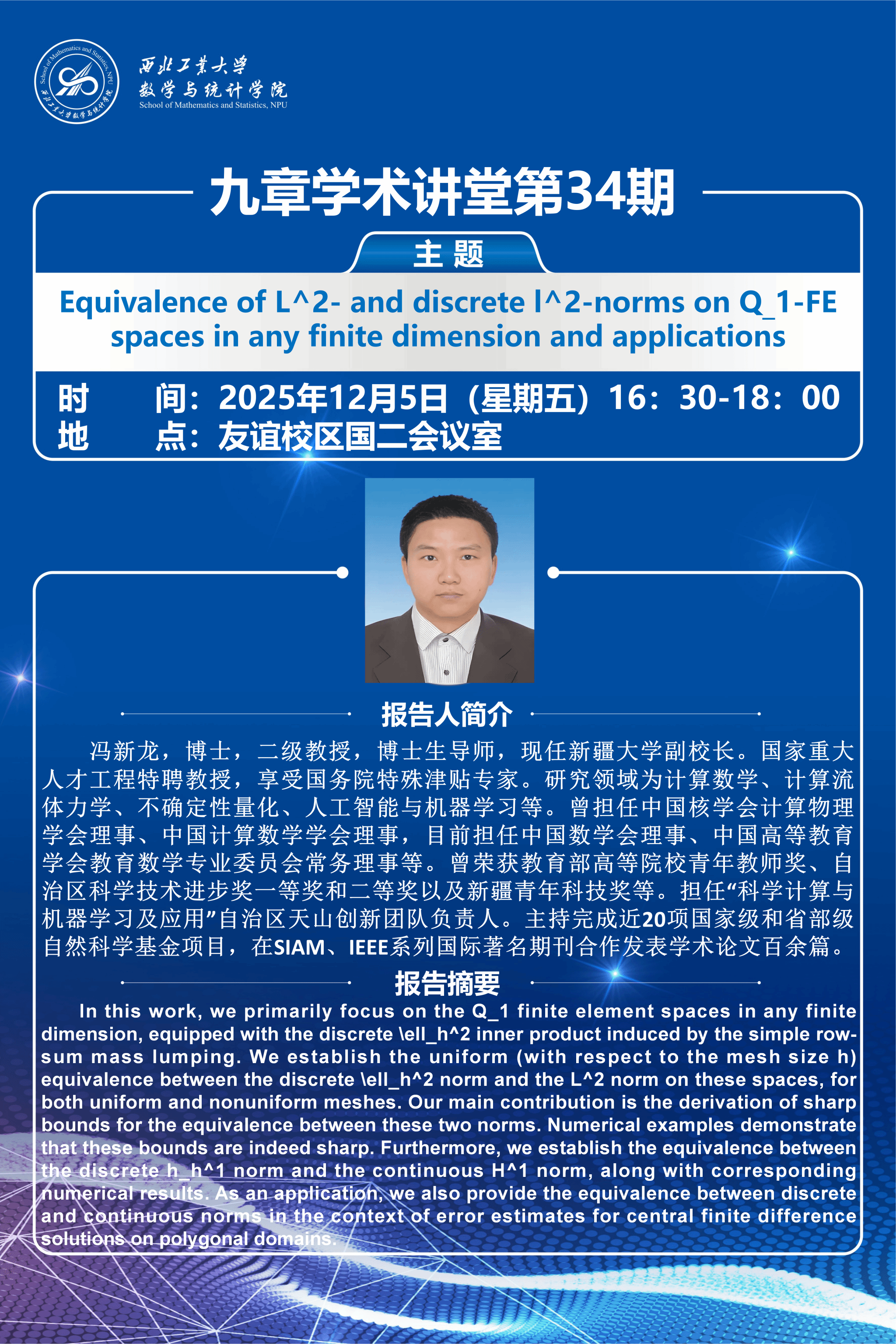 【九章学术讲堂第34期】Equivalence of L^2- and discrete l^2-norms on Q_1-FE spaces in any finite dimension and applications