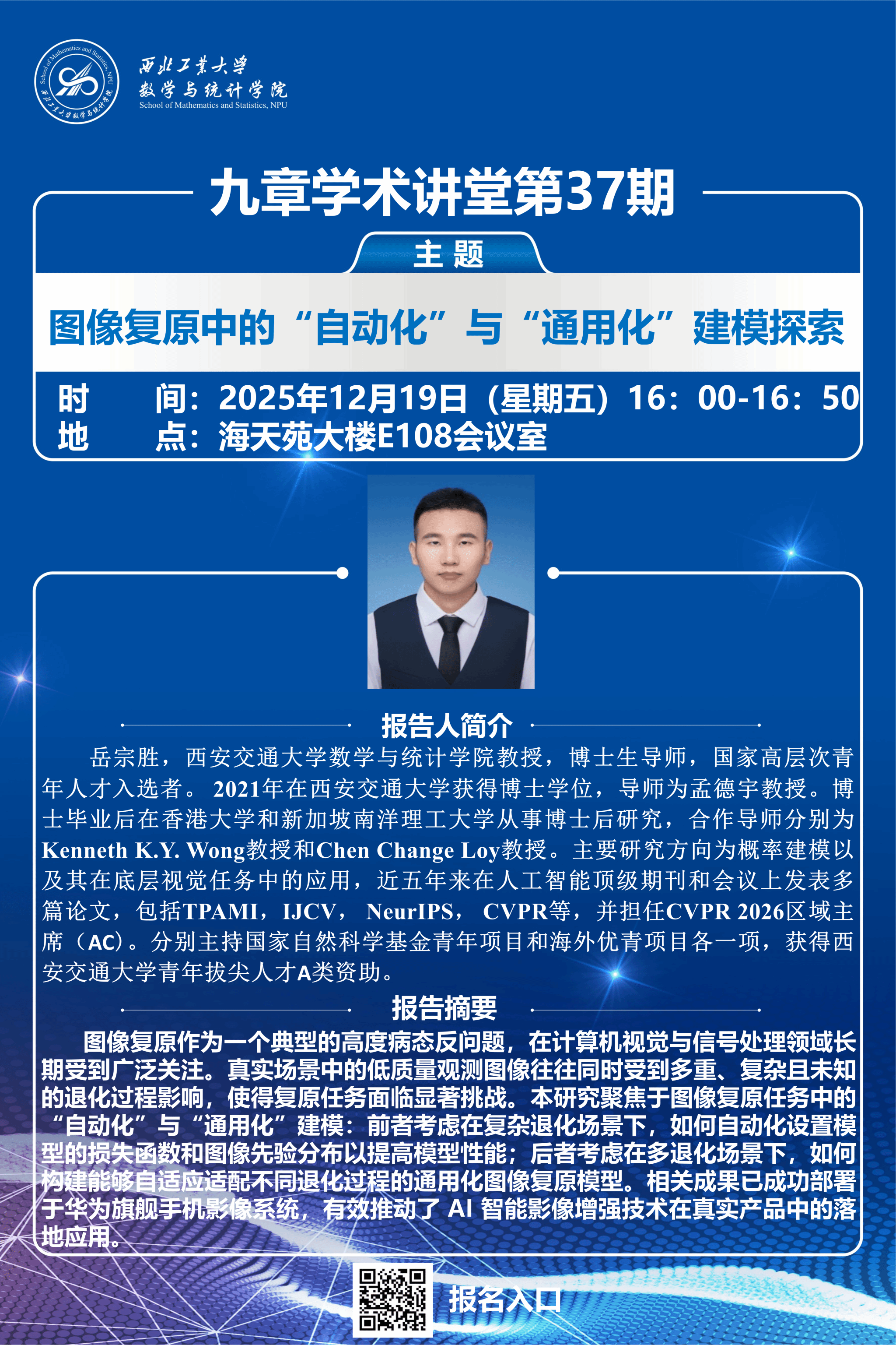 【九章学术讲堂第37期】图像复原中的”自动化”与“通用化”建模探索