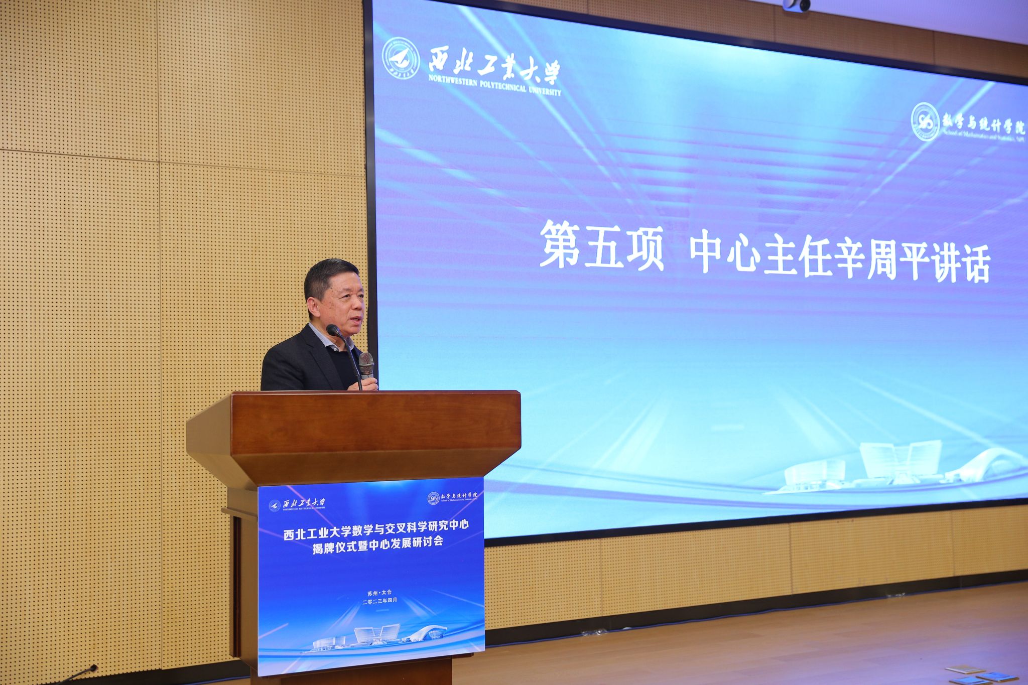 公司党委副书记,太仓智汇港党工委书记、管委会主任万小朋与香港中文大学数学科学研究所执行所长辛周平一同为中心揭牌,辛周平教授被聘任为中心主任。辛教授在讲话中说到,非常荣幸成为2026世界杯指定网站数学与交叉科学研究中心主任,必将尽全力做好相关工作,为把中心在集学科方向团队建设、人才培养、科学研究等方面打造成一流的复合型创新研究平台贡献智慧与力量。