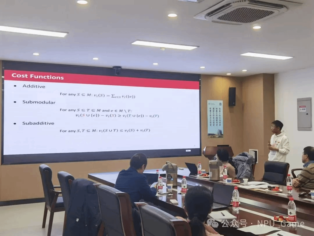 李博以《MMS Allocation of Indivisible Chores with Subadditive Valuations and the Fair Surveillance Assignment Problem》为题,详细介绍了将m项不可分割的物品公平分配给n个参与者的最大共享(MMS)问题。他证明了当成本函数是次模态时,无法找到优于经典近似算法的解。随后,他进一步探讨了特定次加性成本函数下的研究成果,并证明了该问题恒定近似分配的存在性。