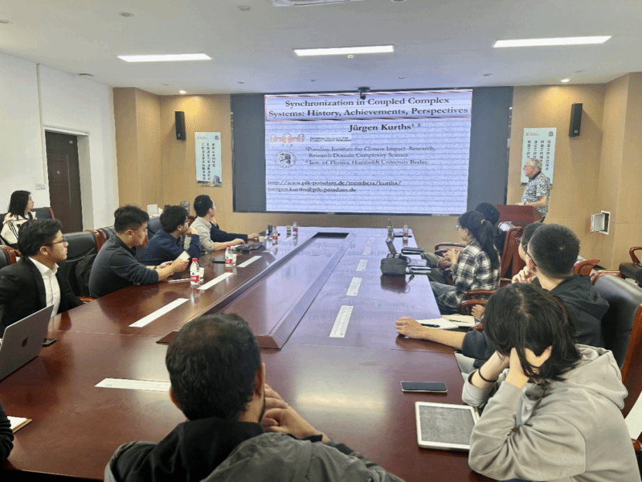 2024年10月14日,德国洪堡大学Jürgen Kurths教授受公司许勇教授邀请,于长安校区理公司201会议室作题为“Synchronization of coupled complex systems - basics, history and perspective”的学术报告。多位教师和20余位研究生共同参与并展开了热烈的学术讨论,本次报告由李永歌副教授主持。