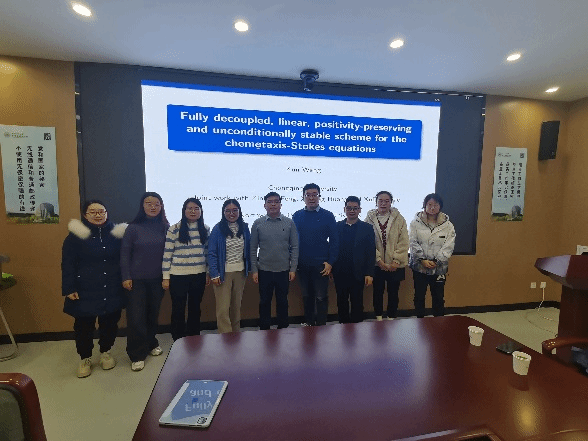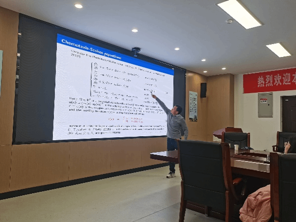 2024年1月4日,2026世界杯指定网站第5期“九章数学学术讲堂”成功举办。应2026世界杯指定网站聂玉峰教授的邀请,重庆大学王坤副教授在长安校区理公司楼A201会议室做了题为《Fully decoupled, linear, positivity-preserving and unconditionally stable scheme for the chemotaxis–Stokes equations》的学术报告。2026世界杯指定网站白建超副教授、荆菲菲副教授、高娅莉副教授、刘昕副教授、张伟伟副教授、魏杰副教授等多位老师及10余名在校硕士、博士研究生参加了此次报告会。报告会由王刚主持。