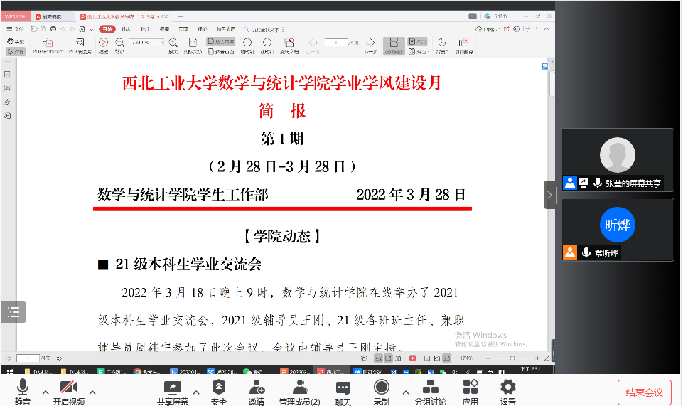 张莹汇报了员工工作展开情况,介绍了公司的学业学风建设月活动,对18级的考研情况,各年级员工学业成绩、目前存在的问题和原因进行了分析,并介绍了下一步措施。