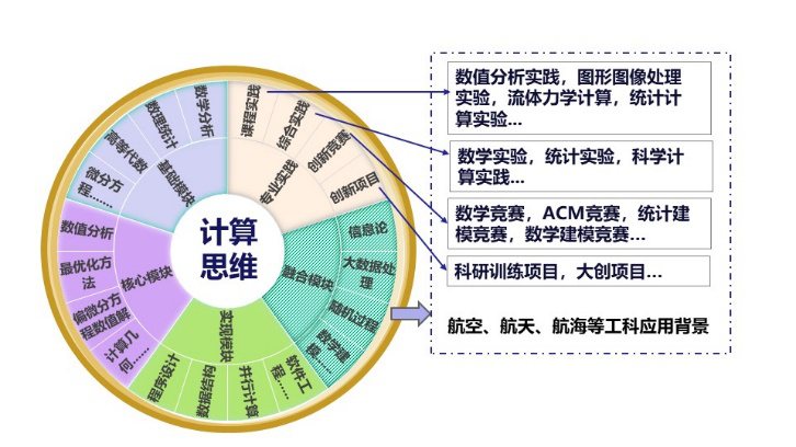 在专业培养方面,突出实践能力培养,专业基础课程之外,配备以实际问题为背景的数学实验、科学计算实践、科学研究训练、专业实习和毕业设计;同时注重学科交叉与知识融合,依托公司浓厚的航空、航天、航海、大数据及人工智能等工科优势方向,开展学科前沿讲座课程,实施与工科教师联合授课方式拓展专业认知;重视强化价值观塑造,结合西工大浓厚的国防科技研究背景,培养有家国情怀、勇于担当、服务国防战略和社会需求的专业人才。