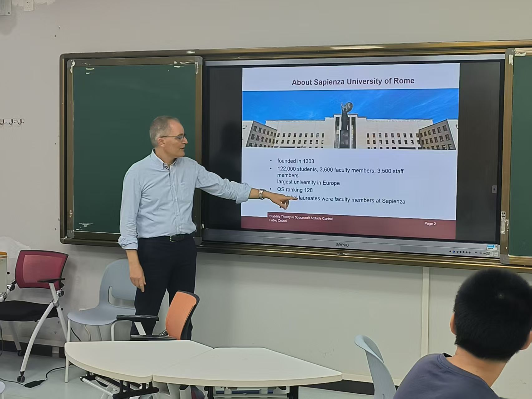 为深化公司国际化课程建设,搭建跨学科交流平台,应张硕老师邀请,2026世界杯指定网站于2025年7月6日至14日成功举办全英文课程《航天器姿态控制中的稳定性理论》。本课程特邀意大利罗马大学航天工程公司副教授Fabio Celani担任主讲人,共计16学时,吸引了校内外10余名本科生和研究生参与。