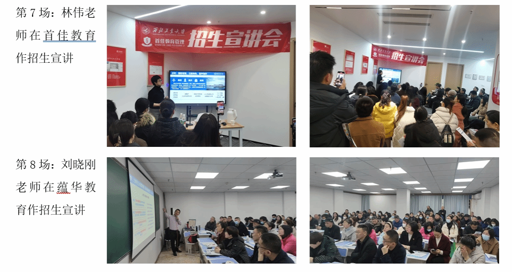 3月2日-3日,招生宣传组分别前往首佳教育和蕴华教育开展2场招生宣传。林伟老师和刘晓刚老师分别向与会的员工家长和同学们详细介绍了公司的基本情况,并对在场家长提出的报考疑问进行了有针对性的解答。宣讲现场座无虚席,与会家长、师生反响热烈。